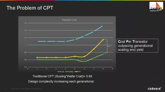 Figure 3: Scaling of Cost per Transistor: Keynote by Boyd Phelps at Chiplet Summit 2025